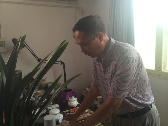 高級工藝美術(shù)師、湖南省工藝美術(shù)大師張驥展示瓷器上的書法